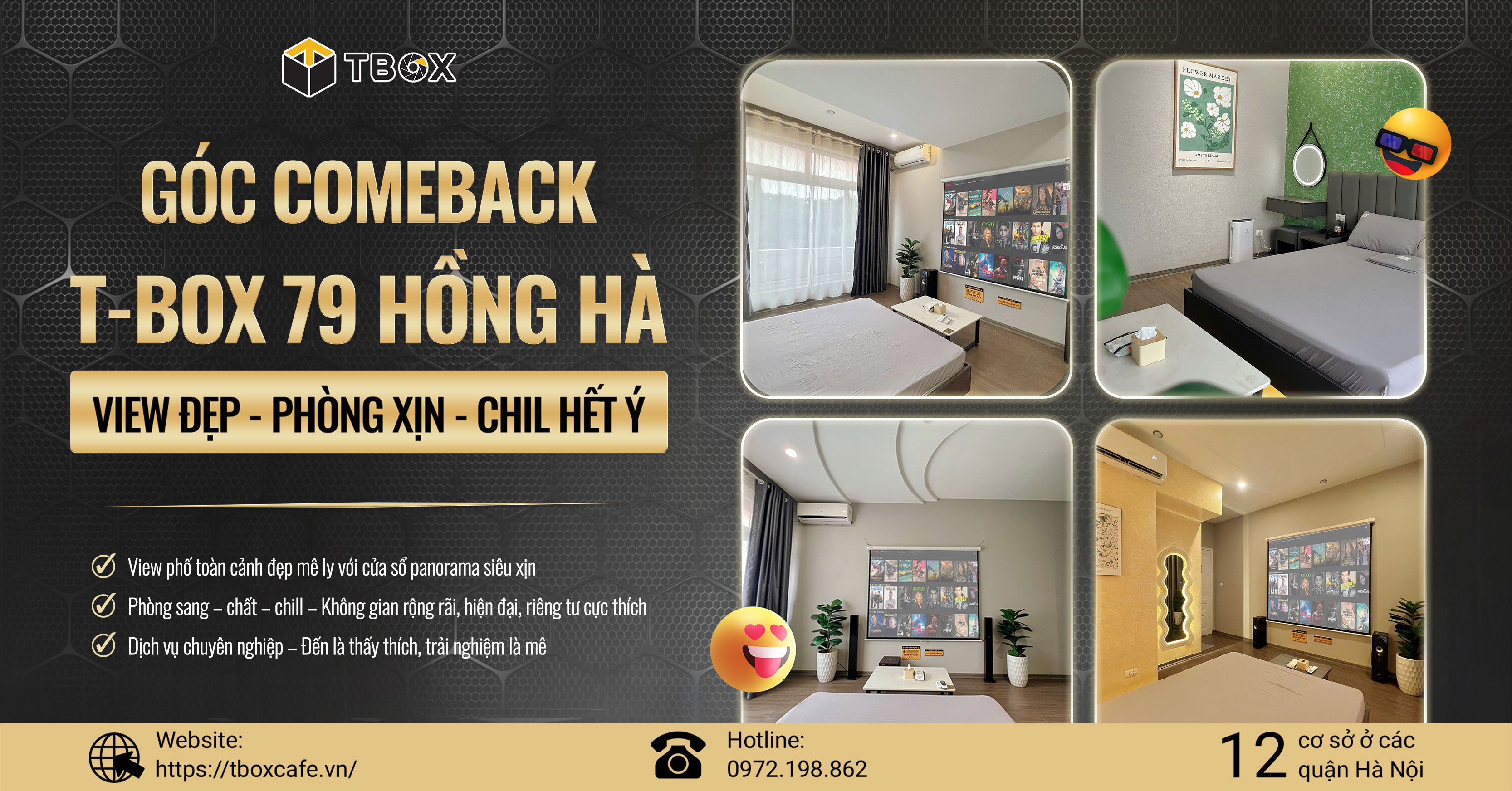 Hแปng Hร chรญnh lร ฤiแปm ฤแบฟn lรฝ tฦฐแปng cho bแบกn vร ngฦฐแปi thฦฐฦกng! Sau thแปi gian แบฅp แปง, T-Box 79 ฤรฃ chรญnh thแปฉc trแป lแบกi vแปi khรดng gian mแปi cแปฑc ฤแปnh, hแปฉa hแบนn mang ฤแบฟn nhแปฏng giรขy phรบt thฦฐ giรฃn ฤรกng nhแป!