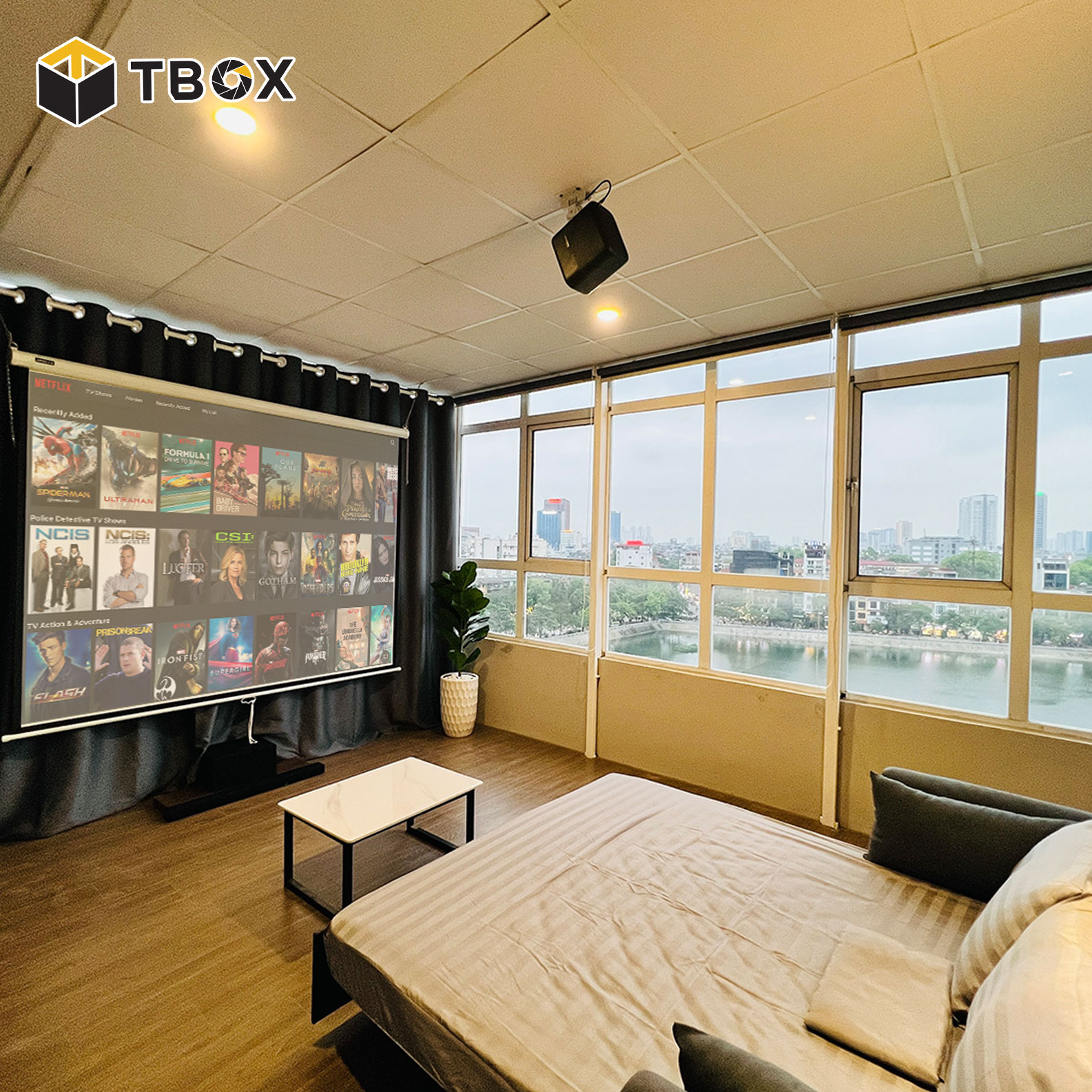 - Màn chiếu, âm thanh sống động hệt như rạp chiếu công cộng