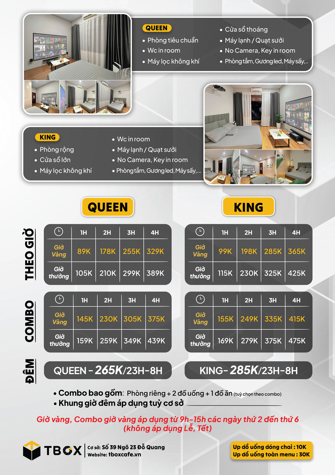 2. Hạng box và Combo hẹn hò tại T-BOX Cafe Đỗ Quang, Cầu Giấy