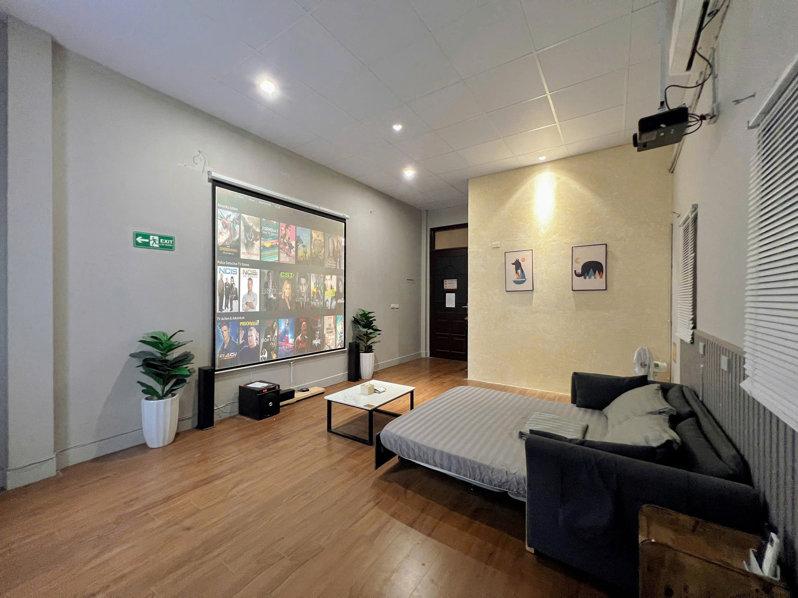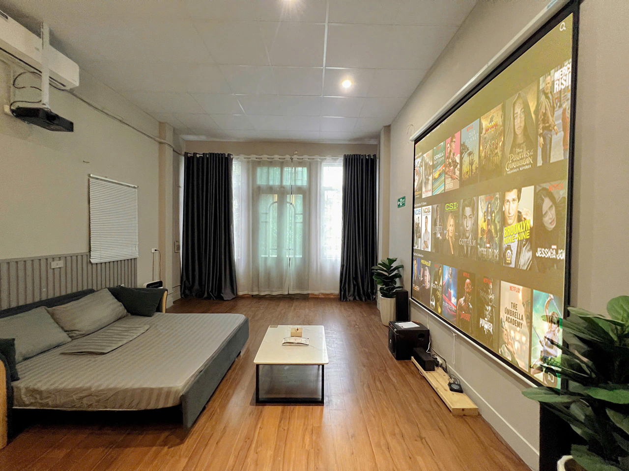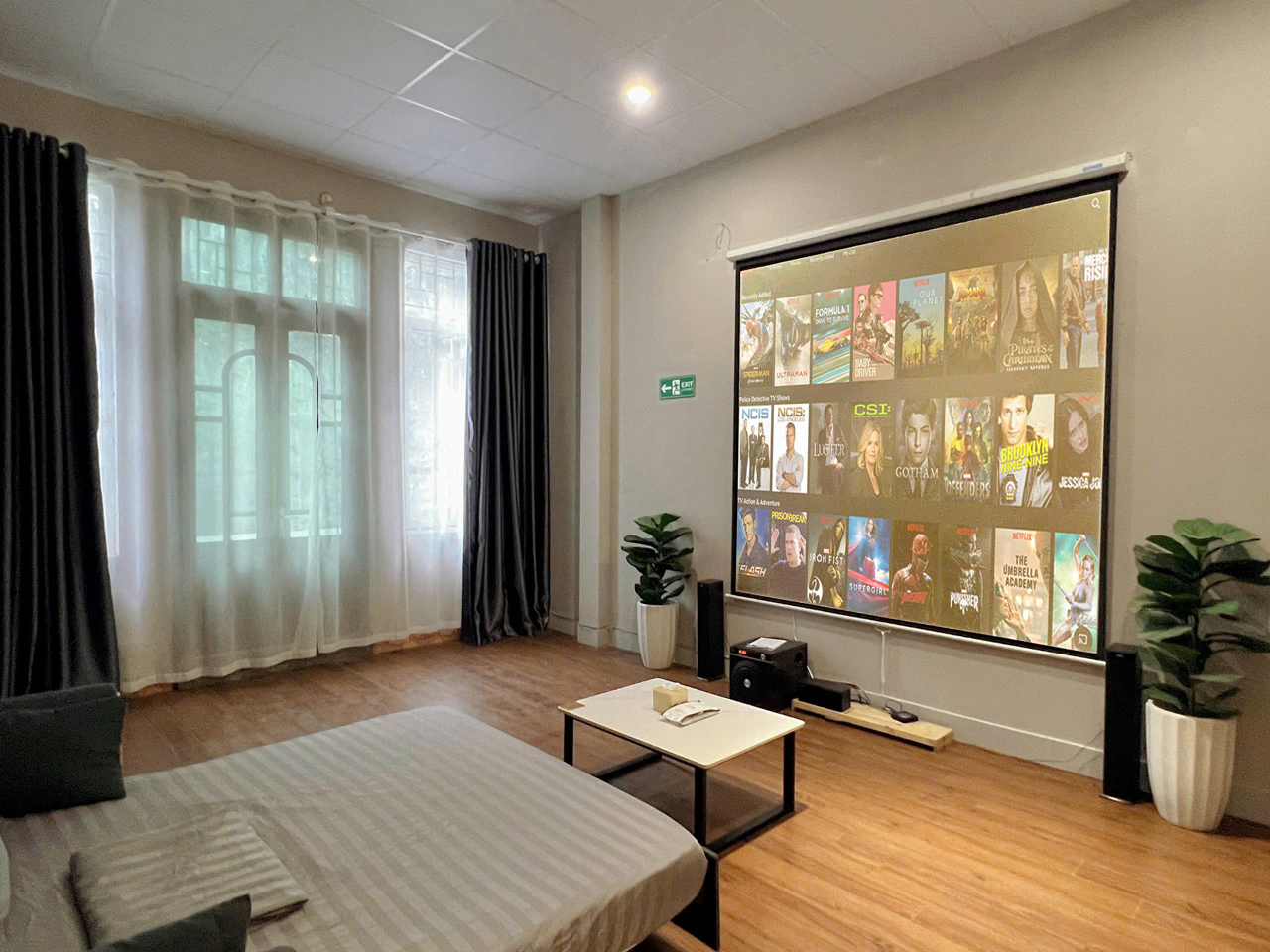 - Màn chiếu, âm thanh sống động hệt như rạp chiếu công cộng