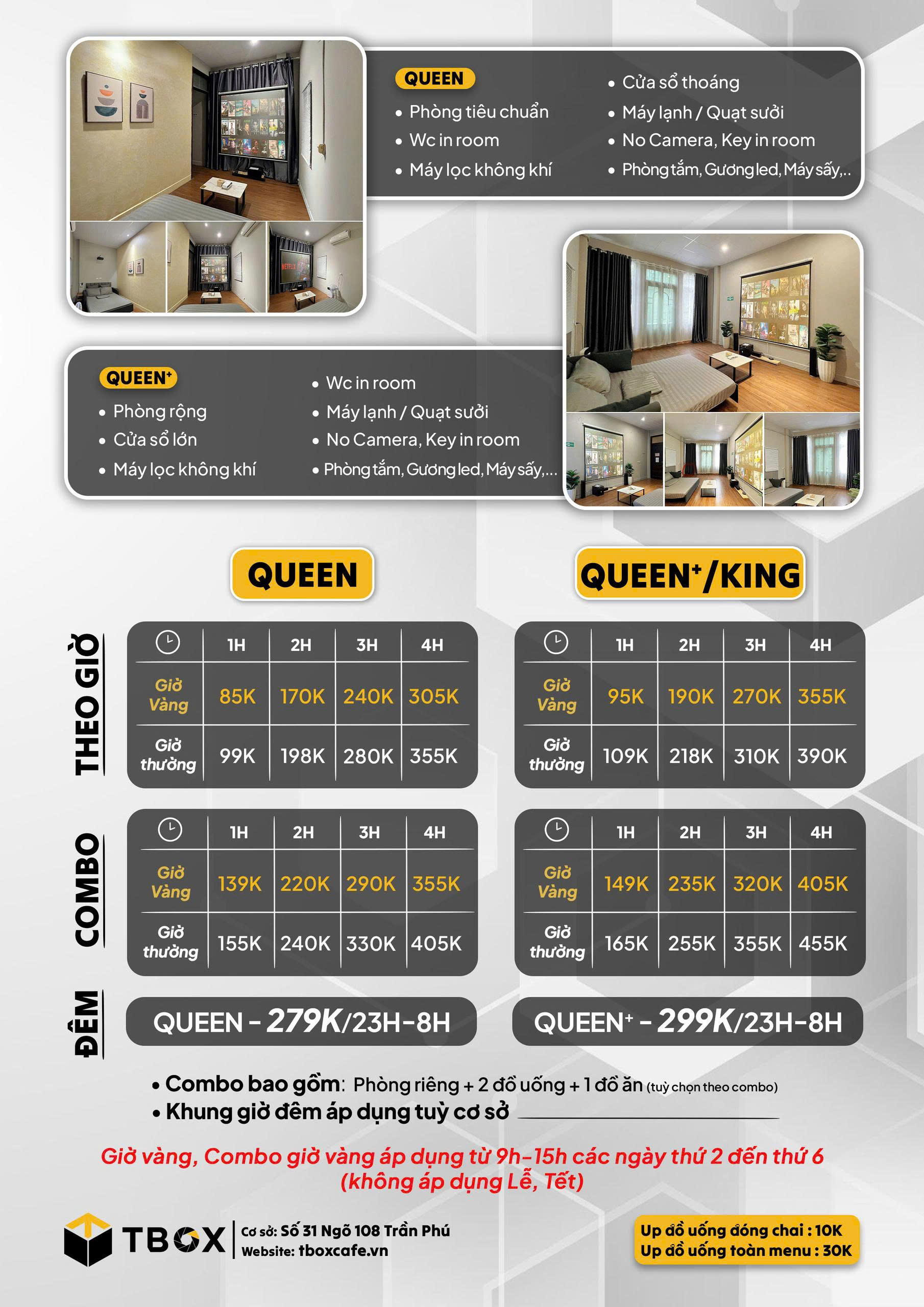 2. Hạng box và Combo hẹn hò tại T-BOX Cafe Trần Phú - Hà Đông.