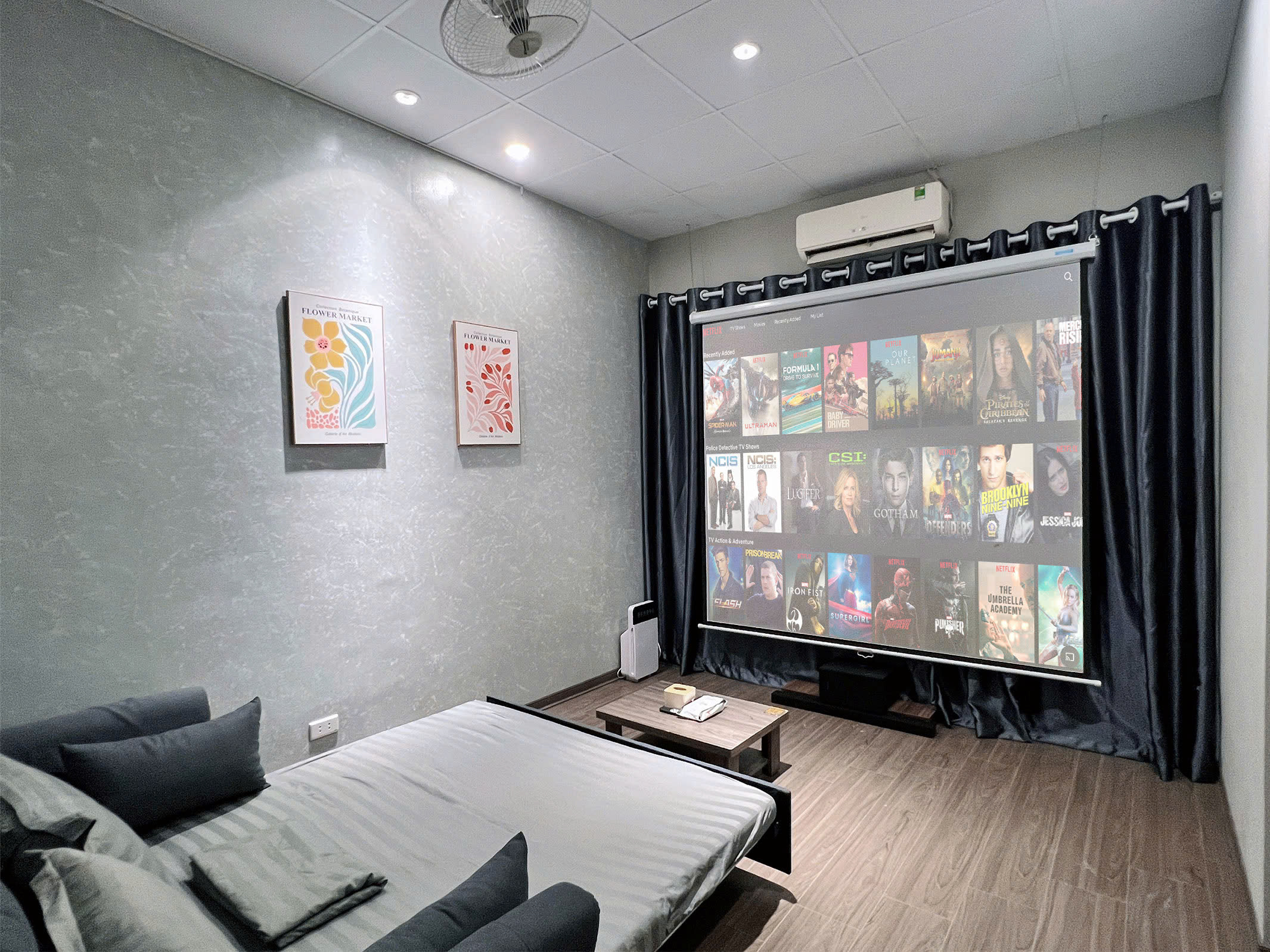 - Máy chiếu nét căng với đầy đủ ứng dụng, Netflix premium, Galaxy Play cùng hệ thống âm thanh sống động