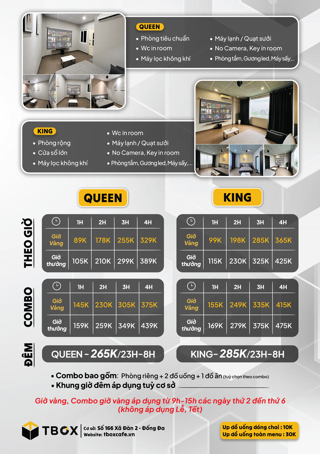 2. Hạng box và Combo hẹn hò tại T-BOX Cafe Xã Đàn - Đống Đa.