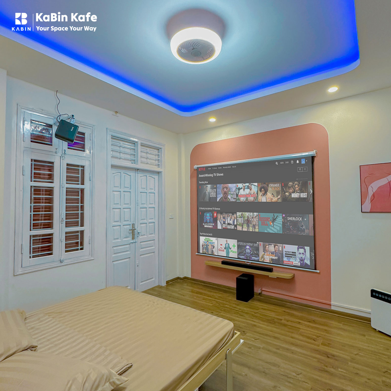 Máy chiếu nét căng với đầy đủ ứng dụng như Netflix, Youtube, Spotify,... tất cả đều là phiên bản Premium, kết hợp với hệ thống âm thanh sống động, mang đến cho bạn trải nghiệm giải trí tuyệt vời.