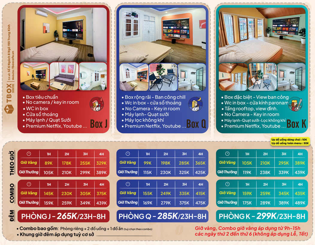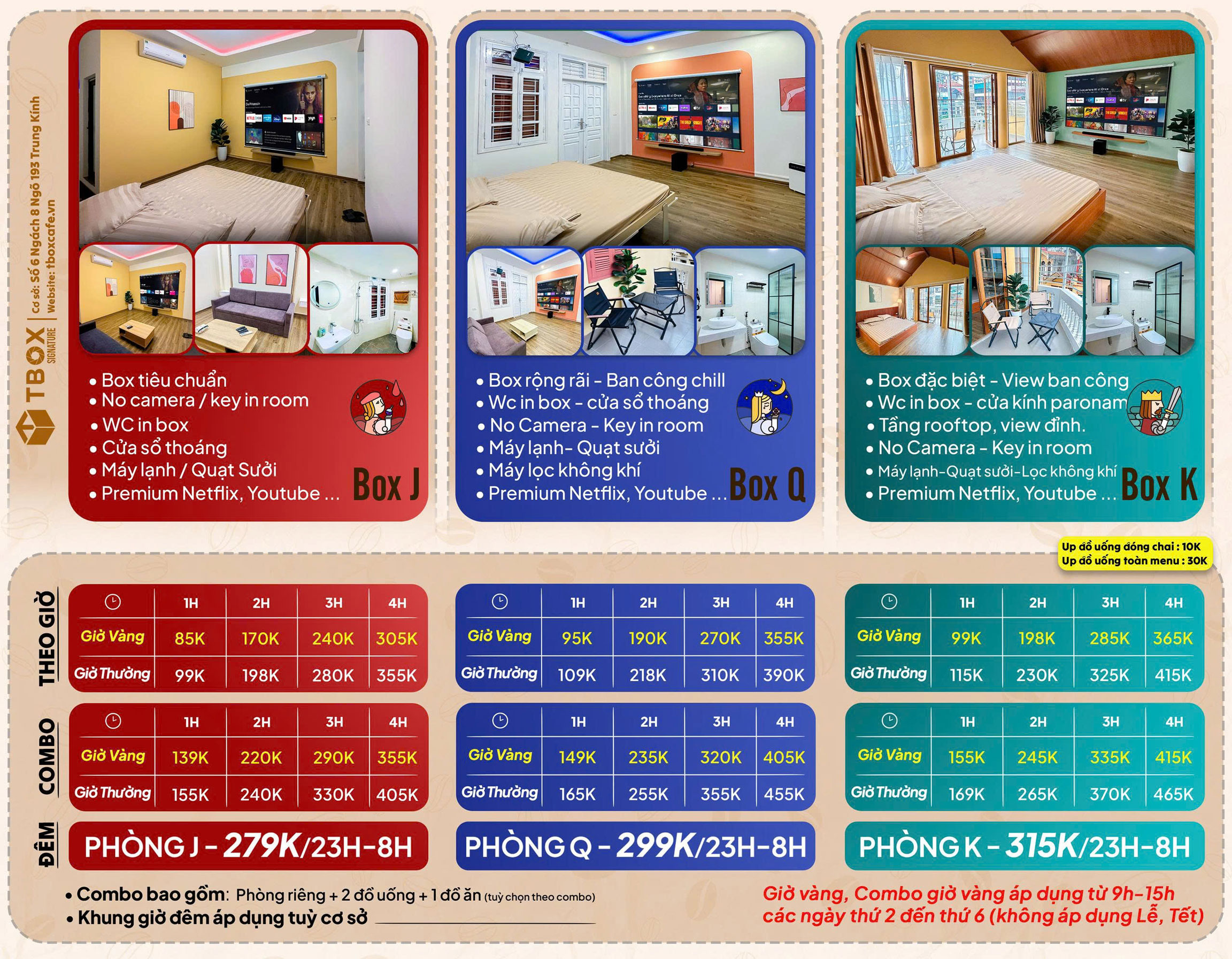 Chào mừng bạn đến với T-Box Signature, một thương hiệu mới tinh thuộc hệ thống T-Box Cafe ! Chúng tôi tự hào mang đến trải nghiệm độc đáo trong không gian hoàn toàn riêng tư, nơi bạn có thể tận hưởng không khí thoải mái và dịch vụ chất lượng.