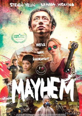 Trong Mayhem, Steven Yeun vào vai luật sư Derek Cho, người bị buộc tội oan là gián điệp, cùng lúc đó một loại virus bí ẩn bị phát tán trong công ty khiến nhiều người bốc mùi hôi thối và mất đi tự chủ cũng như quyền kiểm soát bản thân. Tòa nhà bị cách ly để kiểm soát những người bệnh và sự lây nhiễm. Luật sư Derek Cho, một nhân viên đang bất mãn kết hợp với một khách hàng tò mò Melanie Cross (Samara Weaving) để chiến đấu chống lại các loài virus khủng khiếp này không chỉ vì sự sống mà còn vì công việc của anh ta.